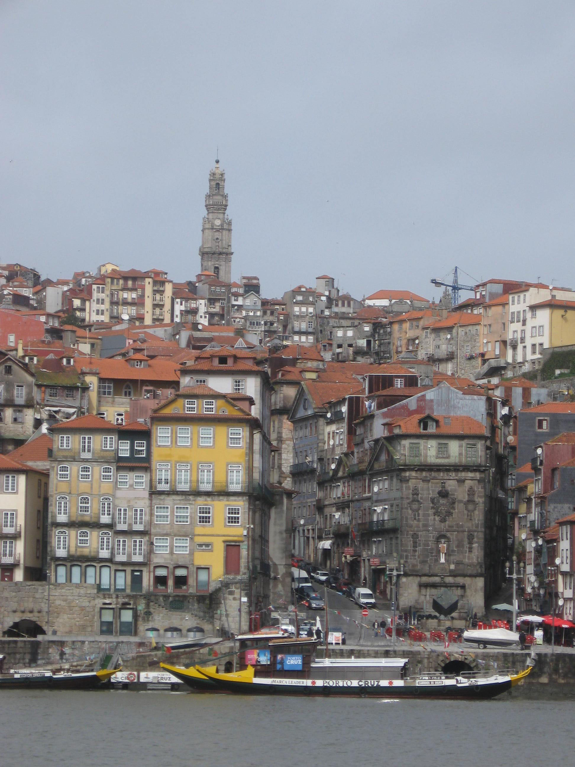 Ou encore traverser le pont et s’en faire une idée globale en dérivant sur l’autre berge, où accostent encore ces bateaux typiques, annonciateurs de bons vins. De là, les couleurs s’interpellent, dialoguent, comme une foule excitée. On aperçoit, dominé par cette tour qui nous a fait le cadeau de pouvoir l’admirer de haut, l’ensemble des constructions qui nous appellent, nous font signe de revenir… Berceau de la ville, autour desquels elle a développé son centre, où commerces et bureaux se mêlent, et puis, plus loin, toutes ces habitations : vers la mer les quartiers « chics », ailleurs ces grands immeubles, ces quartiers denses.